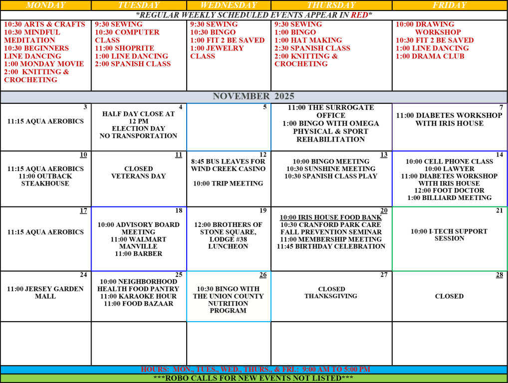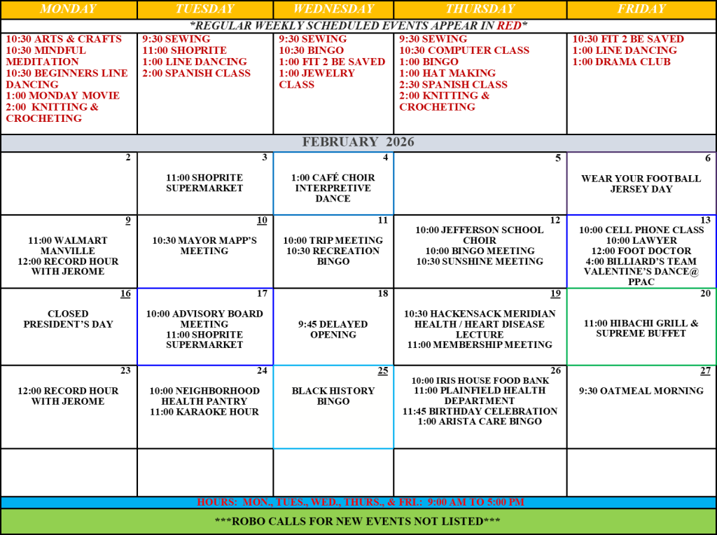Plainfield Senior Center400 East Front St.Plainfield, NJ 07060Phone 1: (908) 753-3506Fax: (908) 753-3101